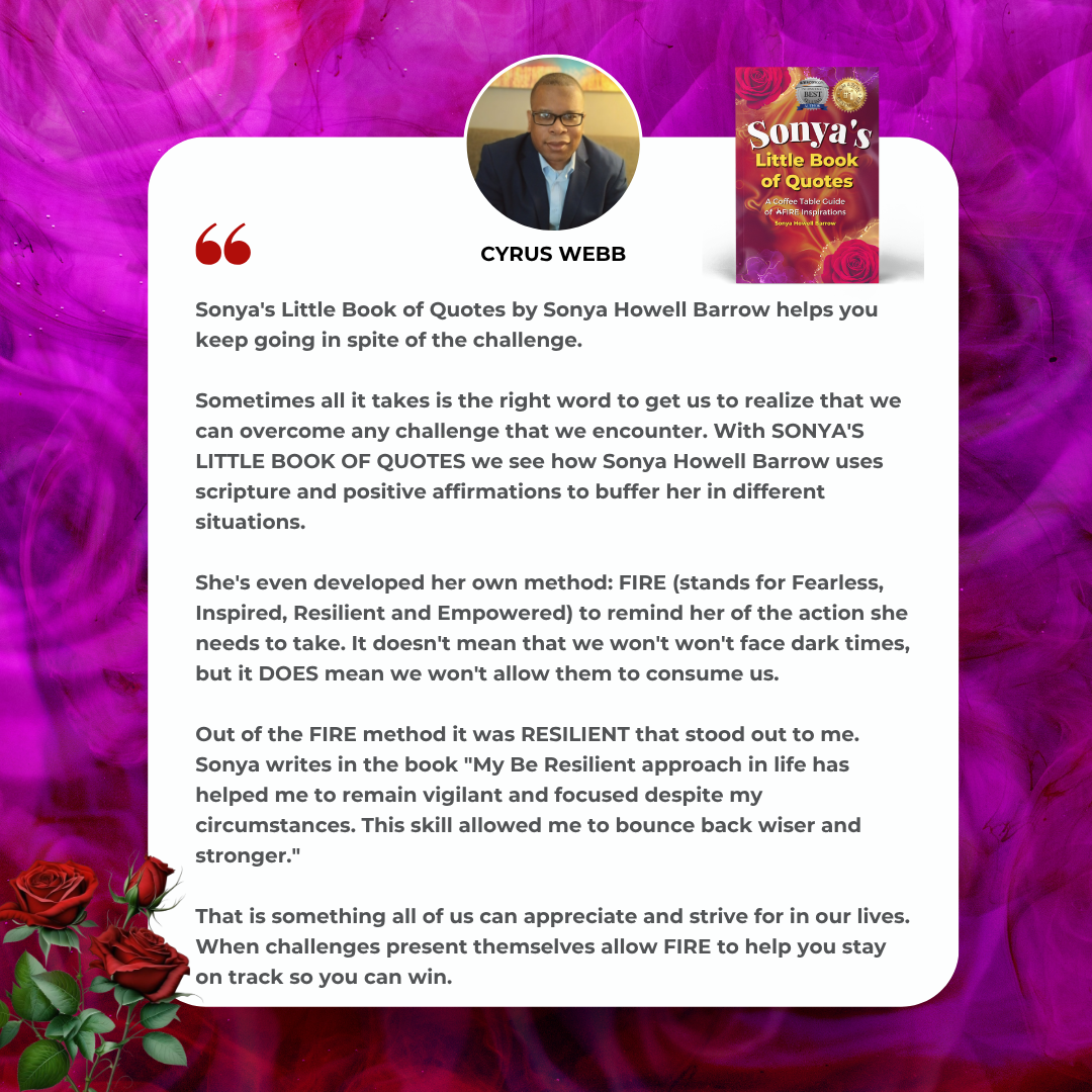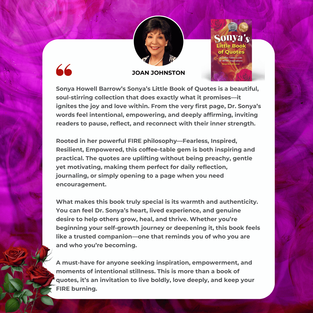 Sharing insights from my book, Sonya’s Little Book of Quotes, and empowering listeners to embrace confidence, self-awareness, and personal growth.